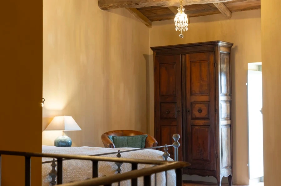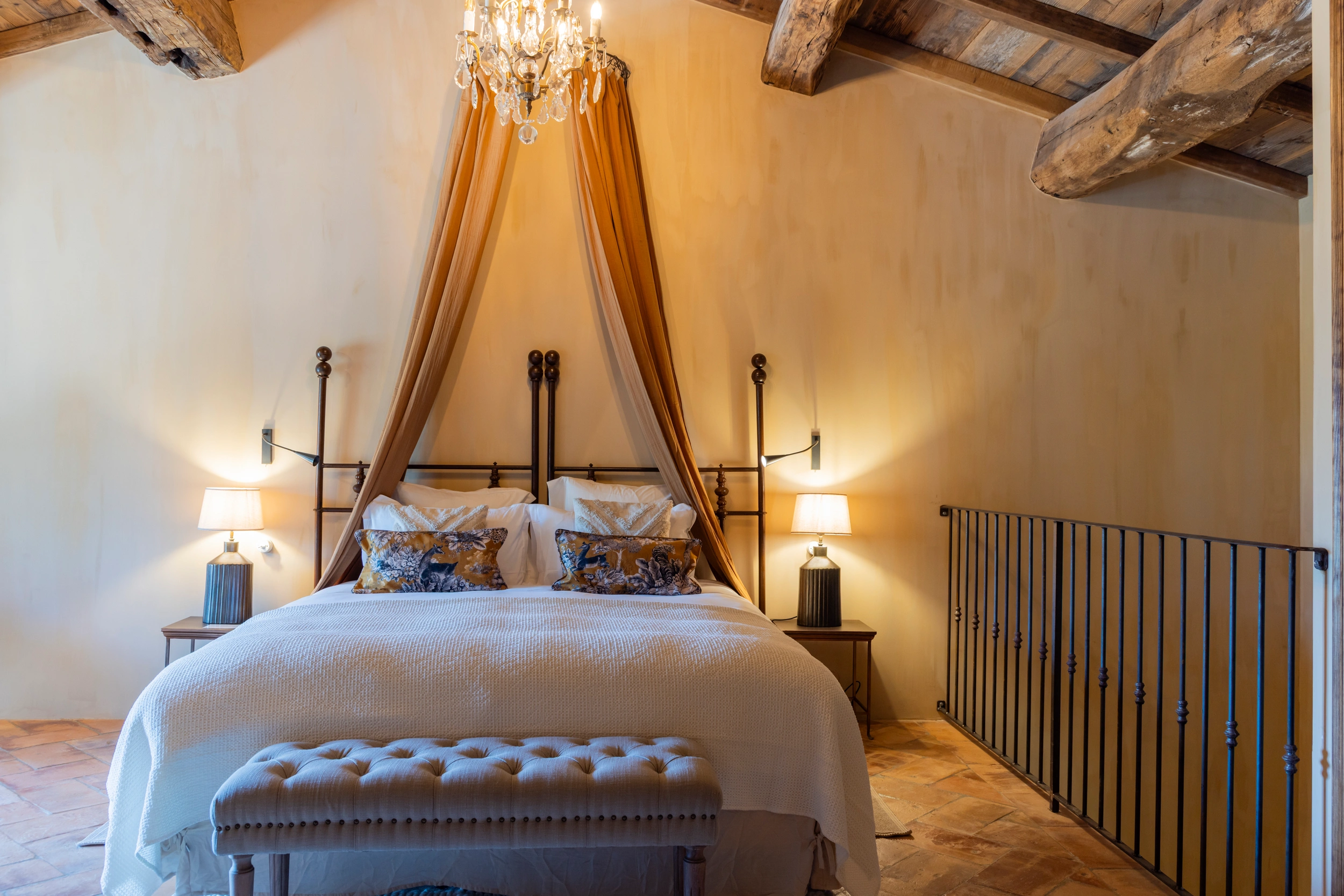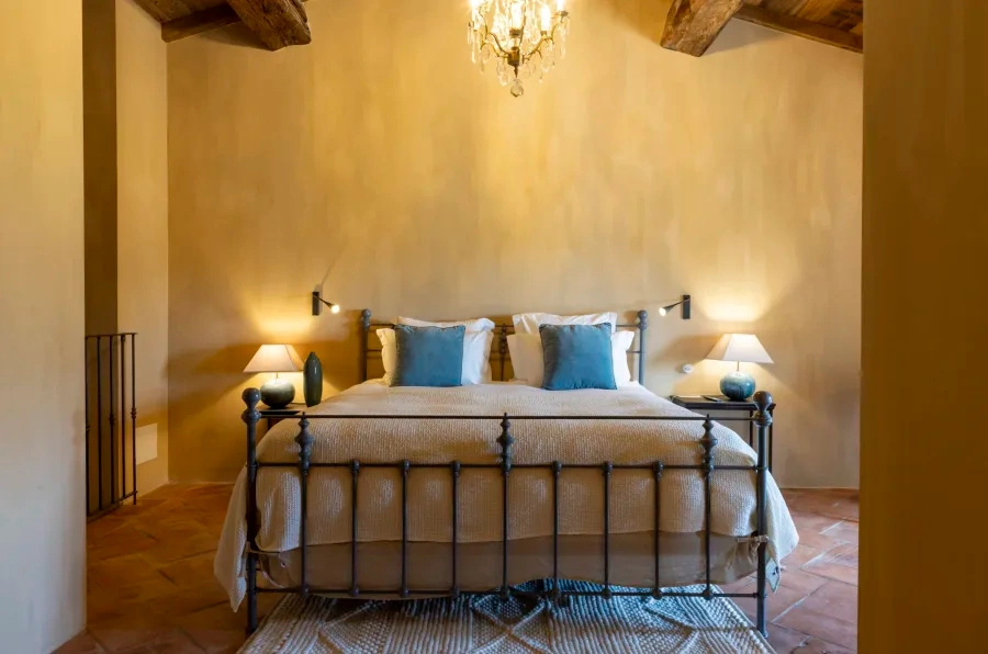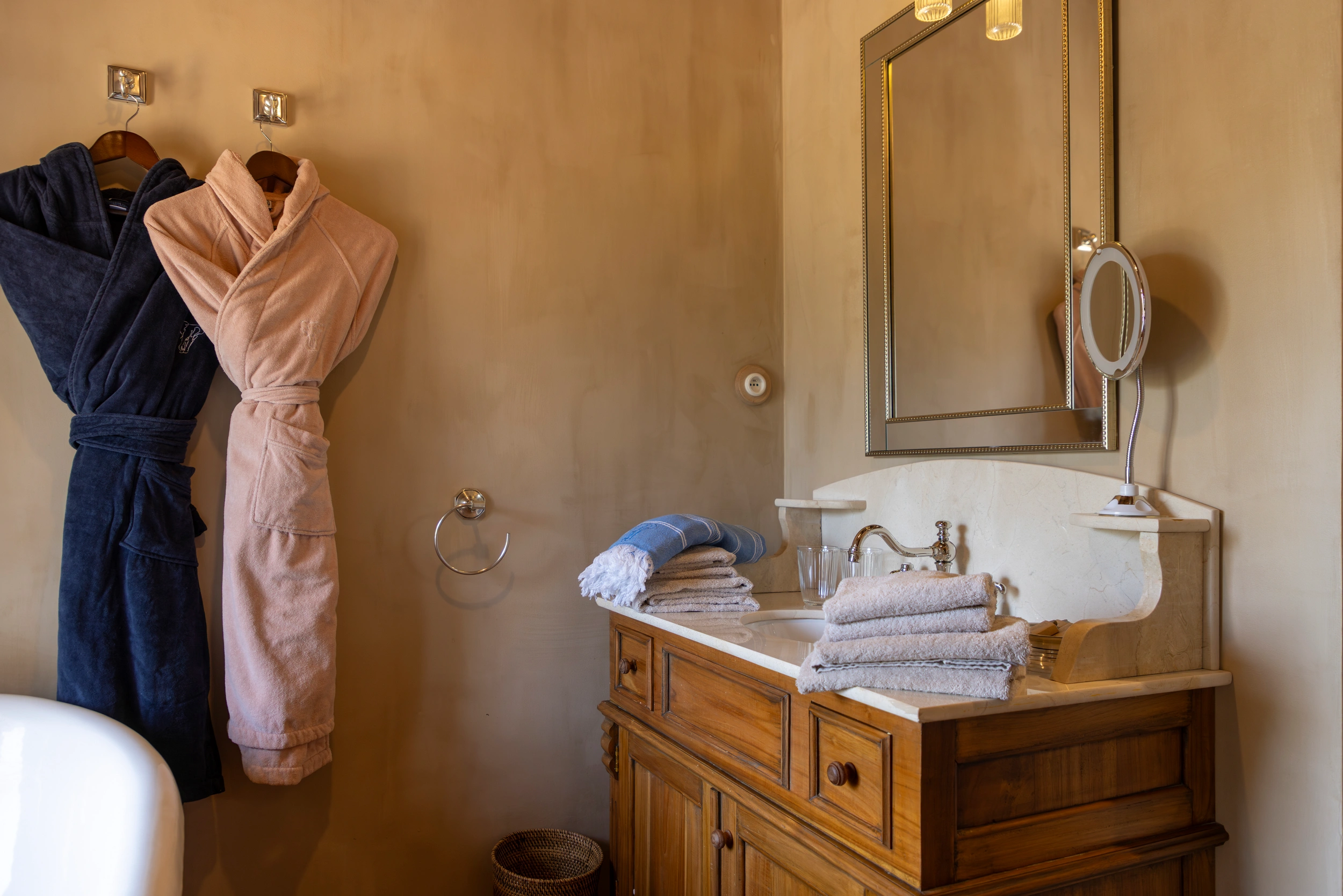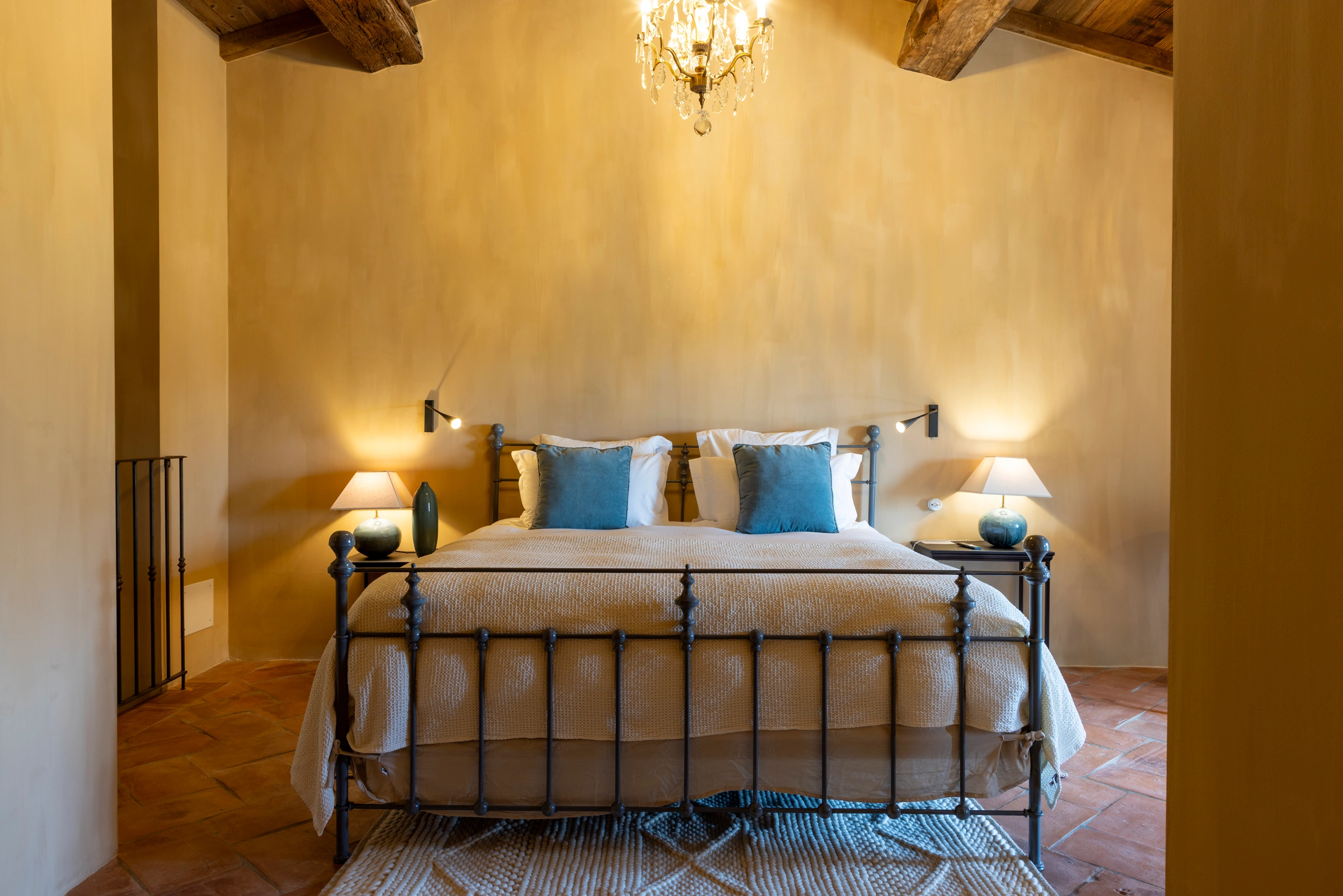 Non loin du murmure délicat de la fontaine en pierres, près de la place centrale du « village », ces majestueuses suites sur deux étages dévoilent un cadre aussi spacieux qu’enchanteur. Une chambre nichée sous les toits, des cheminées dans les salons, et des terrasses baignées de lumière composent ce tableau où l’art de vivre est le maître mot. Baignoire et douche à l'italienne. TOILETTES UNIQUEMENT AU REZ-DE-CHAUSSEE (il n'y en n'a pas à l'étage) Lit King Size Petite famille de 3 : possible ajouter un lit d'appoint dans le salon au rez-de-chaussée.