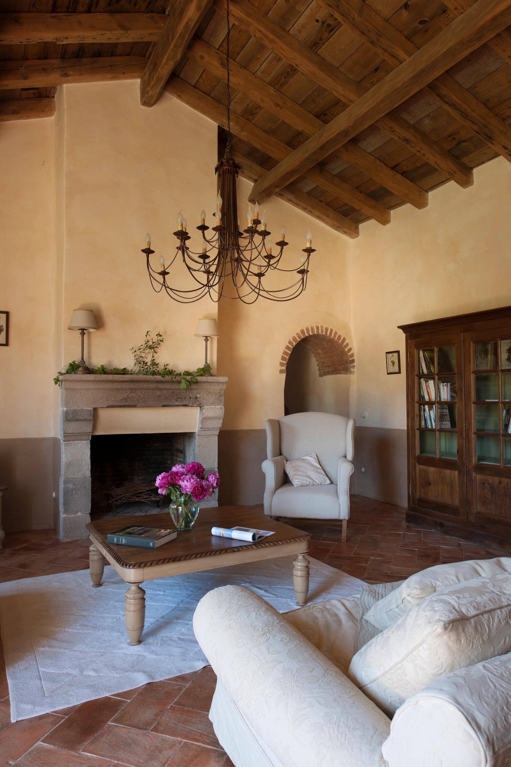 2. Salon avec cheminée, télévision, lecteur de DVD, chaîne hi-fi et téléphone.