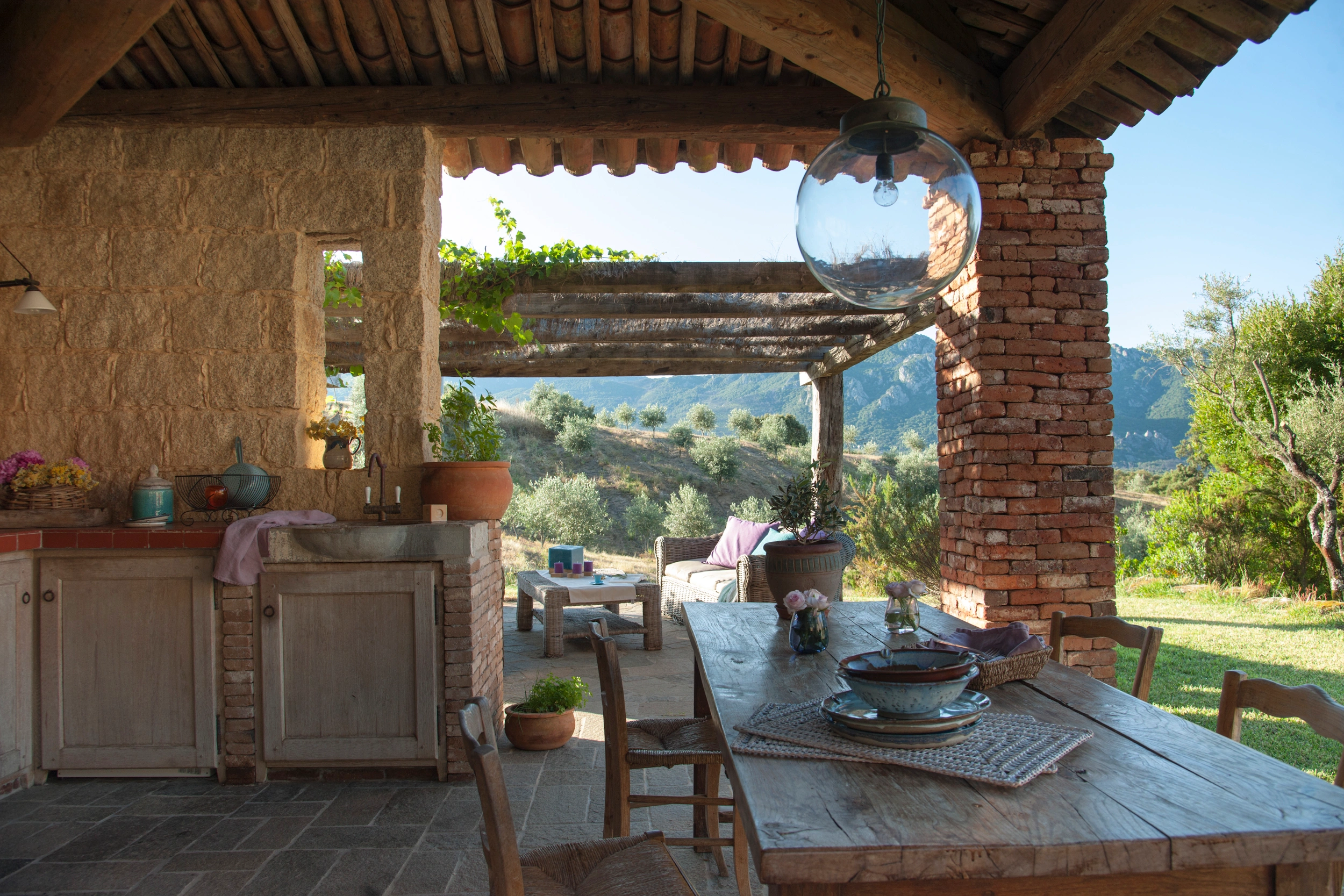 3. La Cuisine d'été et sa salle-à-manger sont entièrement équipées pour des repas au bord de la piscine (barbecue, réfrigérateur, lave-vaisselle...) tandis que le salon d'été en rotin est une invitation à la lecture ou au « Farniente » face à la vallée...