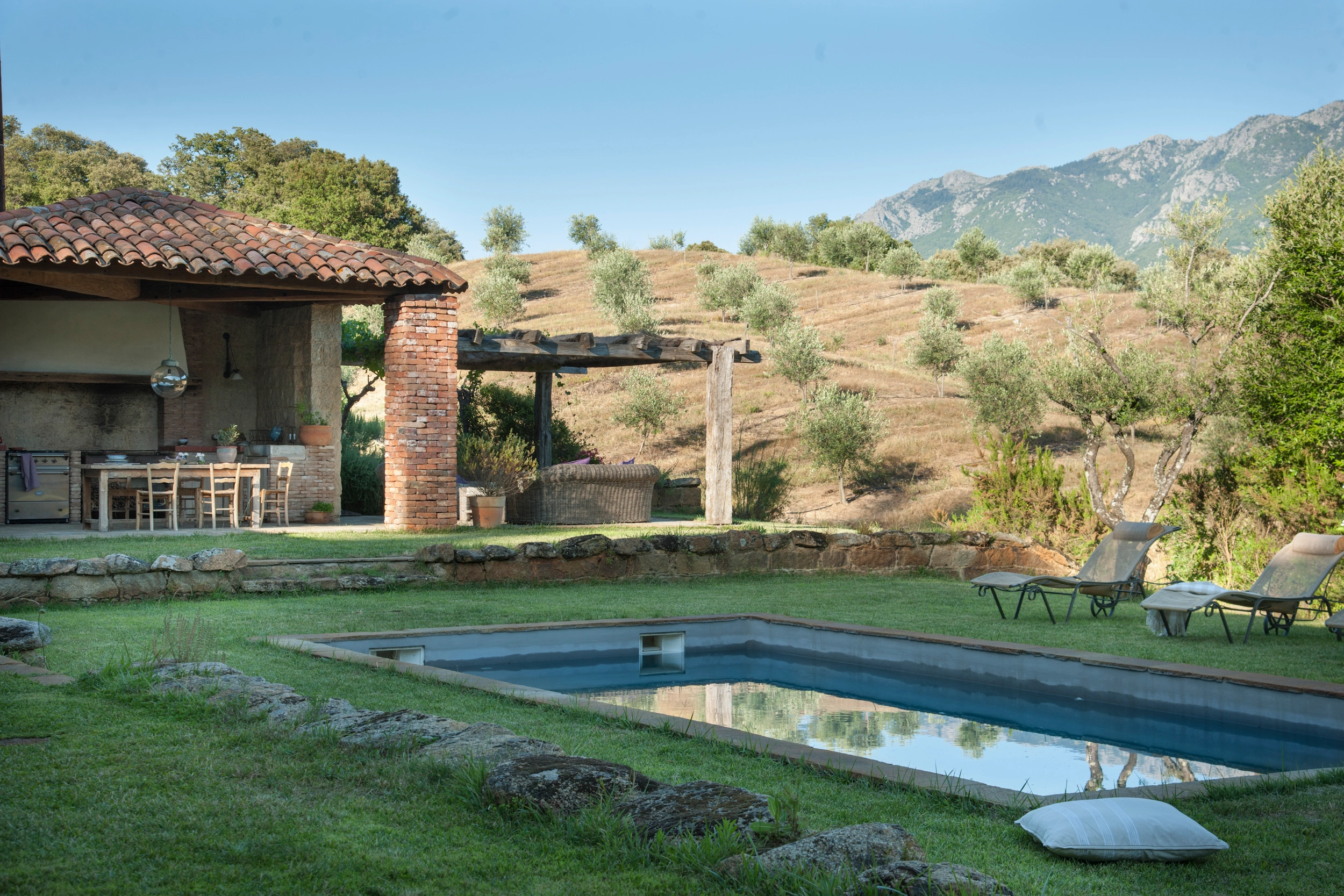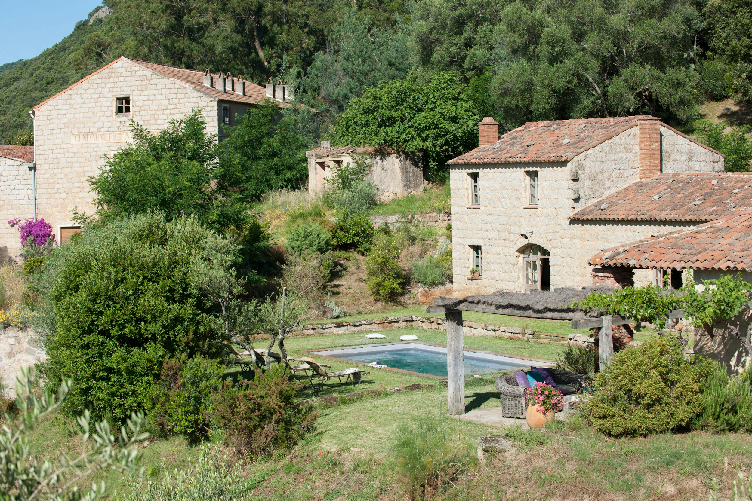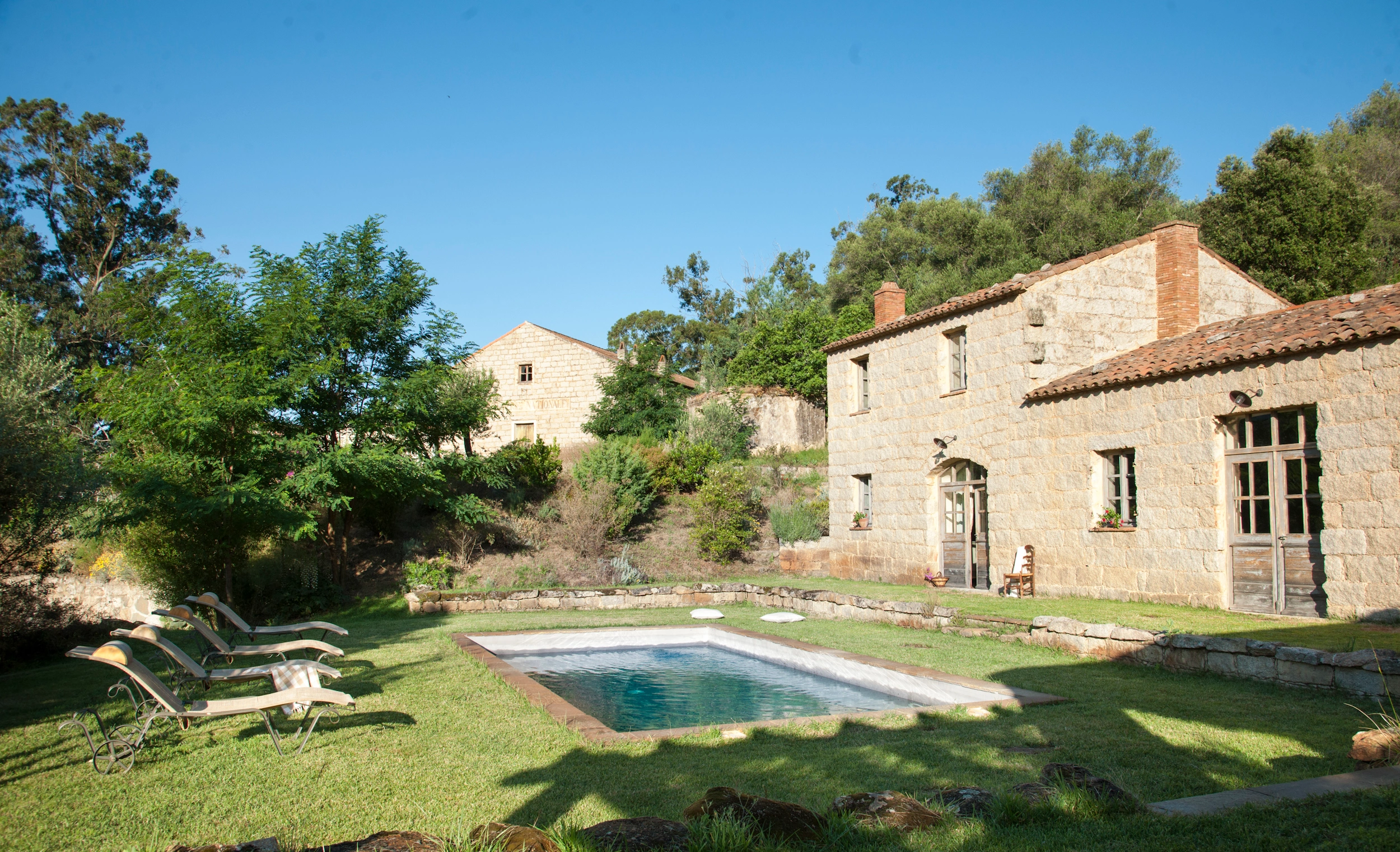 1. La piscine privative de U Mulinu possède sans conteste le charme des bassins d'antan (8 x 4m), toute bordée de gazon.